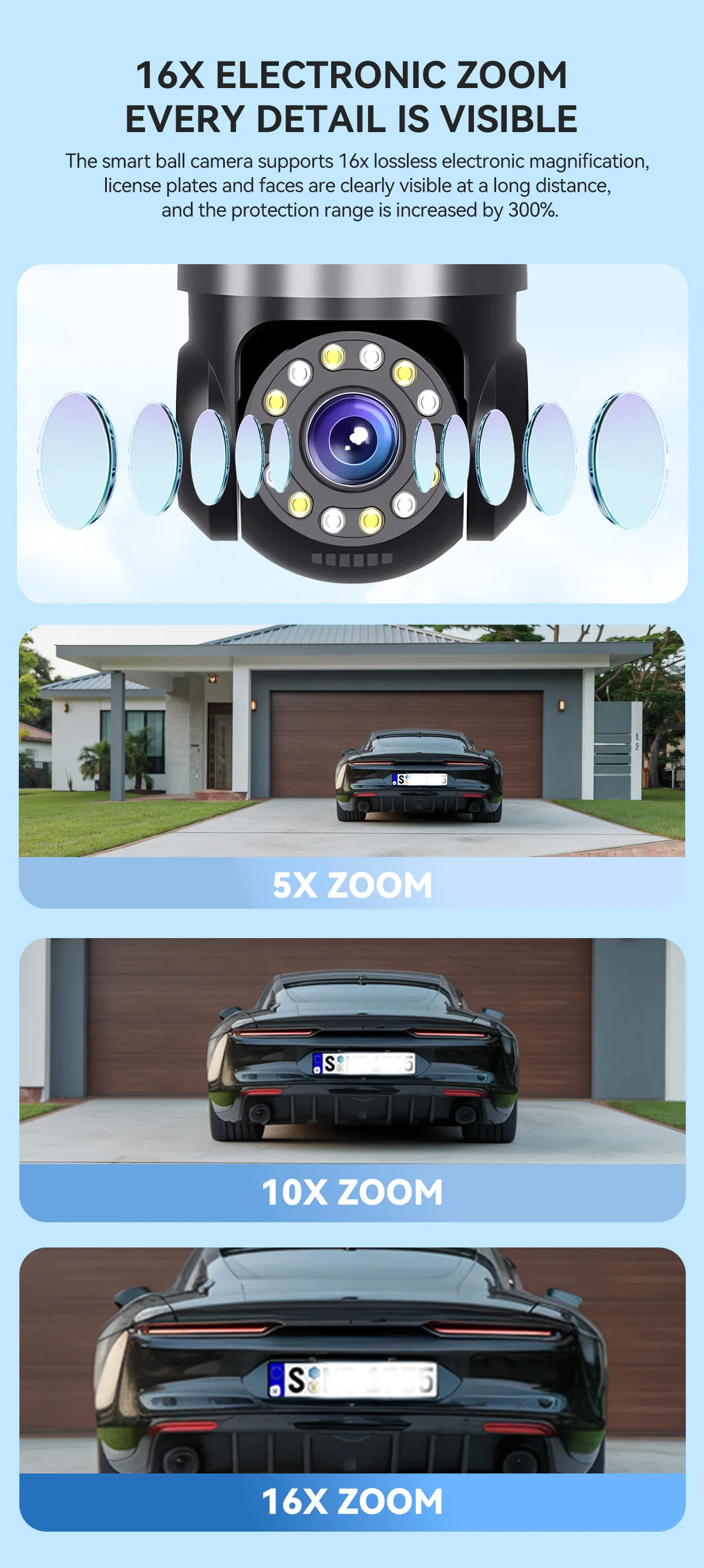 In short, this 20MP WiFi Surveillance Camera is not just about watching—it’s about understanding what’s happening, fast. The combination of 4 lenses, 4 screens, 16x zoom, 360° PTZ with auto tracking, and robust night vision creates a security solution that’s precise, proactive, and ready for real‑world challenges.